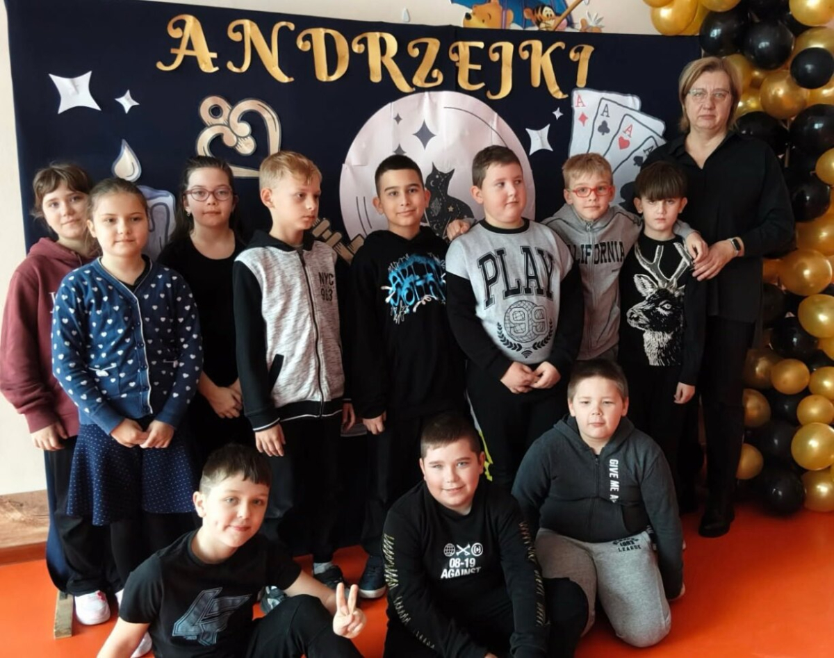 "ŚWIĘTY ANDRZEJ CI UKAŻE, CO CI LOS PRZYNIESIE W DARZE" 28 listopada uczniowie klas 1-3 uczestniczyli w zabawie andrzejkowej. Mieli okazję przenieść się w świat magii i wróżb. Poznali tradycje ludowe związane z tym dniem. Czas spędzony razem był świetną okazją do integracji.
